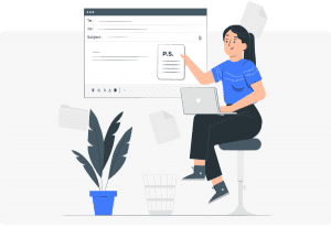 What is PostScript (P.S.) and how does it function in an email?